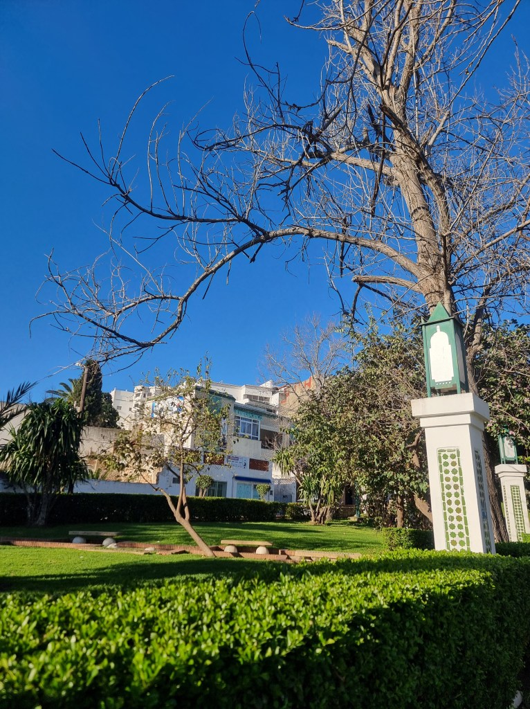 Tetouan ist ein nettes kleines Städtchen mit einer schönen weißen Medina und einigen hübschen Plätzen und Parks. Am besten plant man Zeit ein, um dort einfach herumzustromern und ein bis zehn Kaffee oder Tee zu trinken. Der typische Tee in Marokko ist ein grüner Tee, der über einen Minzzweig im Glas gegossen wird. Meist ist schon Zucker hinzugefügt, was ihn tatsächlich sehr lecker macht.