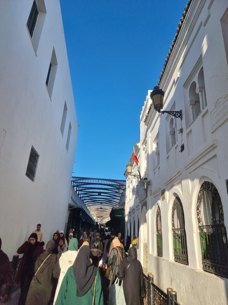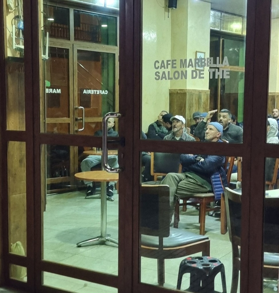 Was uns in Tetouan allerdings auffiel war, dass relativ wenige Frauen auf der Straße unterwegs waren. Viele der Cafés waren ausschließlich mit Männern gefüllt. Wir fragten später unseren Guide danach, ob wir da als Frauen denn überhaupt reindurften. Er sagte, dass es nicht verboten sei, die Männer aber sehr verwundert wären. Von da an nannten wir diese Cafés „Männercafés“. Abends lief ein Fußballmatch der Championsleague zwischen Madrid und Barcelona und alle Männercafés waren gefüllt. Wir liefen durch die Straßen und waren ein wenig amüsiert darüber, wie sie alle aufgereiht wie Schulklassen vor dem Fernseher saßen.